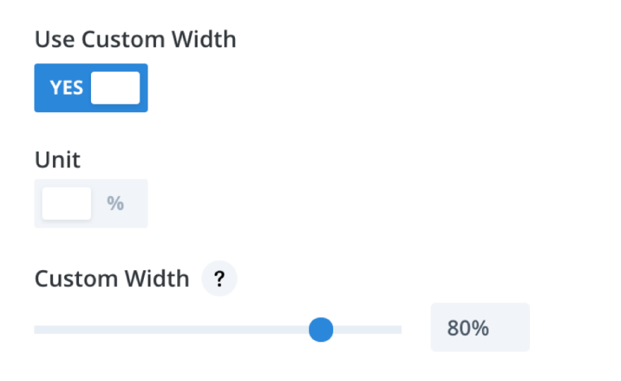 "사용자 정의 너비 사용"을 선택하십시오. 단위가 백분율로 설정되어 있는지 확인하고 슬라이더를 80 위로 이동합니다. 이렇게 하면 해당 행이 사용자가 가진 뷰포트 크기의 80%를 차지하게 되어 모든 것이 뭉치는 것을 방지할 수 있습니다.