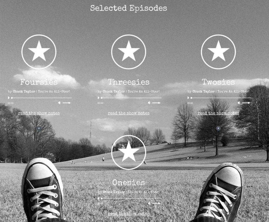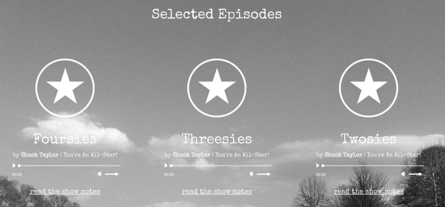 이 섹션은 팟캐스트의 선택된 에피소드를 보여주고 사용자가 아카이브(쇼 노트 페이지와 같이 2부에 제공됨)를 방문할 수 있도록 합니다.