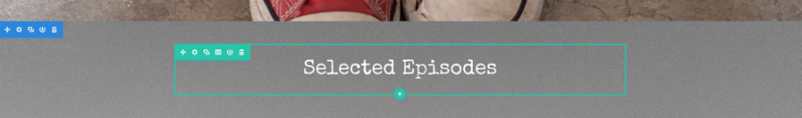 저장한 다음 행에 새 텍스트 상자를 삽입합니다. "Selected Episodes"를 입력하고 WYSIWYG 편집기 중앙에 놓고 설정으로 이동하여 텍스트 글꼴을 "Special Elite"로, 텍스트 크기를 50px로 만듭니다. 이제 다음과 같이 표시되어야 합니다.