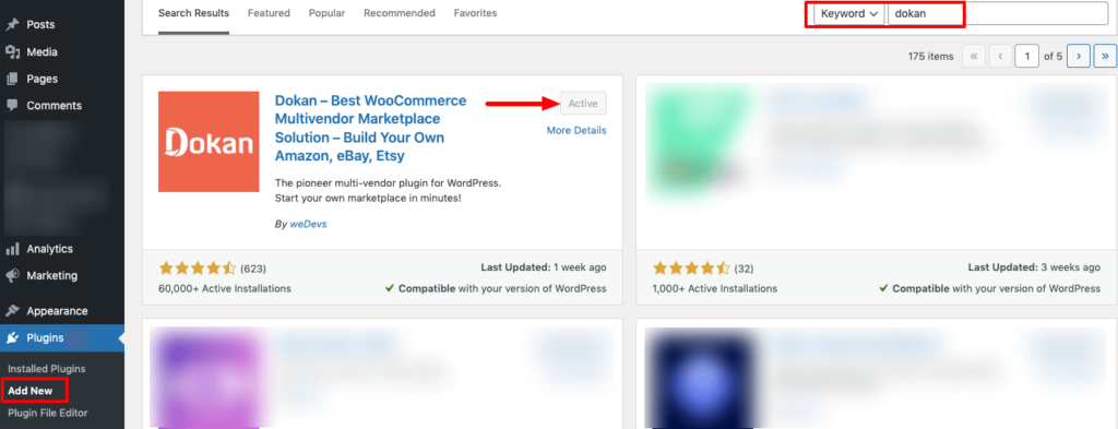 Dokan 설치는 다른 WordPress 플러그인 설치만큼 간단합니다.