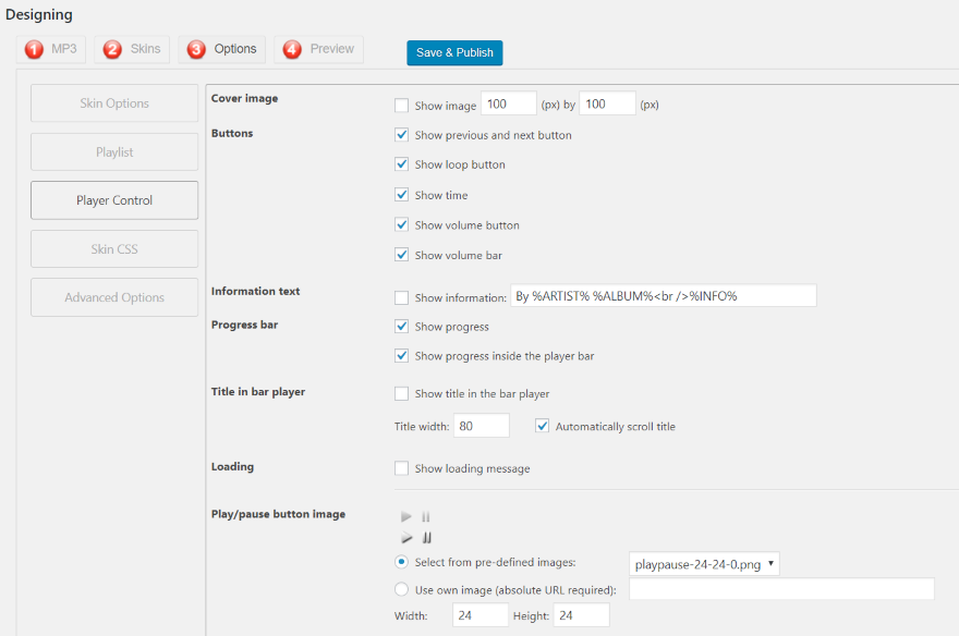 스킨 을 선택하고 원하는 스킨 을 선택합니다. 19개의 옵션이 있으며 CSS로 각각을 사용자 정의할 수 있습니다.