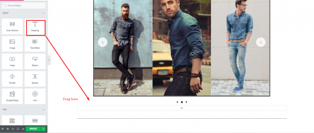 - " 디바이더 위젯 " 을 선택하여 선택한 영역으로 드래그하세요.