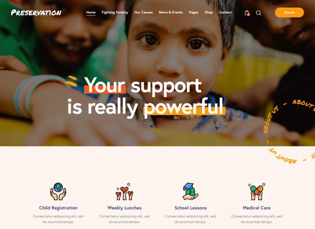 Preservation은 Elementor 페이지 빌더로 구축된 프리미엄 솔루션입니다. Elementor로 구축된 태양광 발전 WordPress 테마의 선택은 광범위합니다. 그러나 모두가 모두에게 효과가 있는 것은 아닙니다. Preservation을 사용하면 이것이 올바른 방법이라는 것을 알고 있습니다. 다양한 비즈니스 요구 사항에 쉽게 맞출 수 있다는 점은 시장에서 가장 좋은 선택 중 하나입니다. 이상적으로는 크라우드 펀딩, 청원 웹 사이트 또는 자선 프로젝트에 적합합니다.