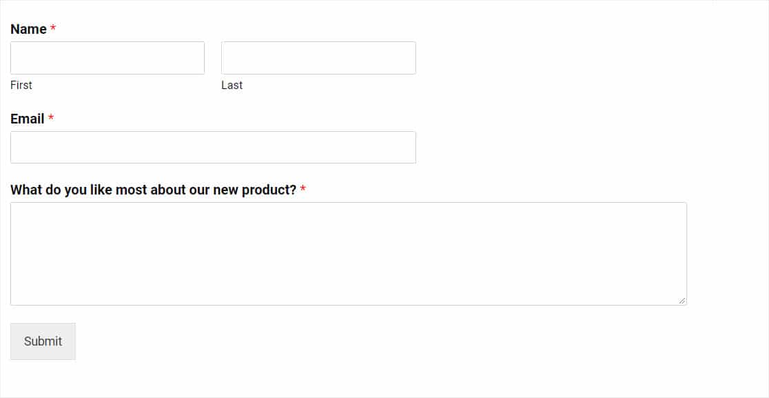 - 사용자 정의 가능 — WPForms의 강력한 기능을 사용하면 다양한 기능을 위해 양식에 여러 필드를 추가할 수 있습니다. 텍스트 필드, 드롭다운 필드, 확인란 목록, 라디오 버튼, 별표 등급 등과 같은 설문 조사 필드를 쉽게 포함할 수 있습니다.