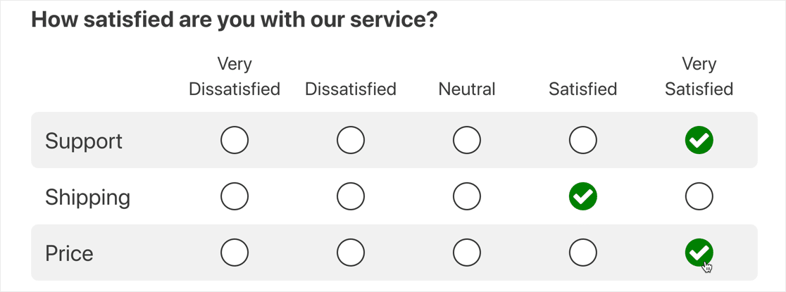 매트릭스 질문 설문조사는 폐쇄형 질문으로 정보를 수집하는 데 도움이 될 수 있는 설문조사 유형입니다. 다음과 같은 열과 행을 사용합니다.