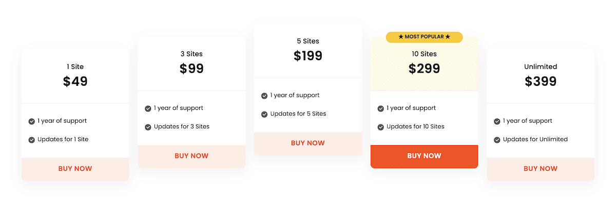 WP Food Manager의 구독 계획은 1개 사이트, 3개 사이트, 5개 사이트 및 무제한 사이트 라이센스를 포함한 다양한 옵션을 제공합니다. 귀하의 필요에 맞는 것을 선택할 수 있습니다.