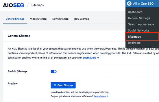 두 플러그인 모두 뛰어난 XML 사이트맵 기능을 제공합니다. 그러나 올인원 SEO를 사용하면 XML 사이트맵을 더 잘 제어할 수 있습니다.