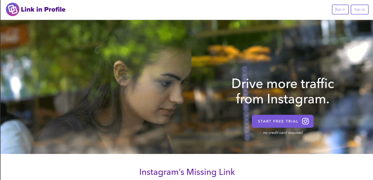 Link w profilu oferuje się jako „brakujący link na Instagramie”. Tworzą dla Ciebie dedykowaną, markową stronę docelową, którą wypełniasz swoimi postami na Instagramie.