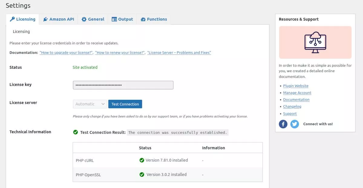 Musisz wprowadzić informacje o swojej licencji, co możesz zrobić w AAWP→Licensing . Uzyskaj klucz licencyjny na swoim koncie AAWP na ich stronie internetowej, a następnie wklej go w polu Klucz licencyjny.