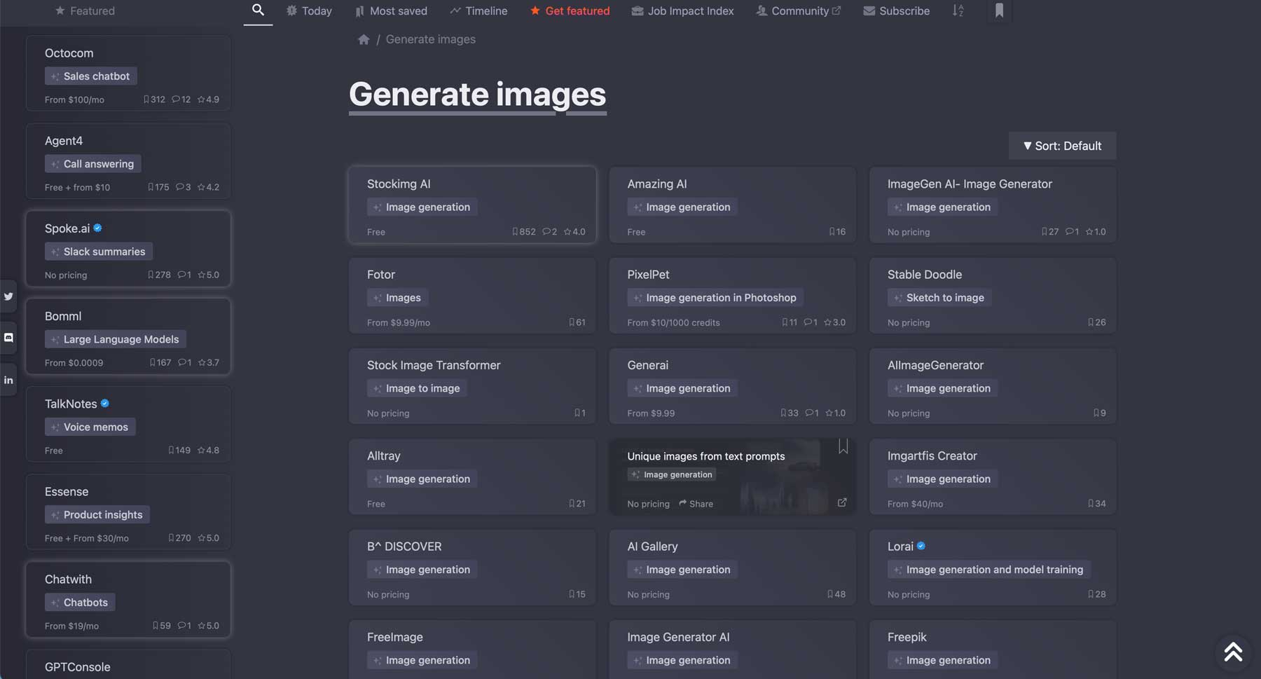 - Szukaj według kategorii, najczęściej zapisanych i nowych narzędzi AI