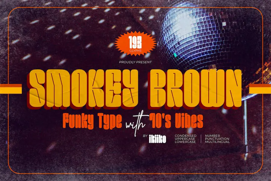 Smokey Brown to czcionka, która oddaje funkowe i uduchowione klimaty lat 70-tych. To wyjątkowy i żywy styl typografii, który pojawił się w tamtej epoce, pod wpływem muzyki soul, funk i disco.