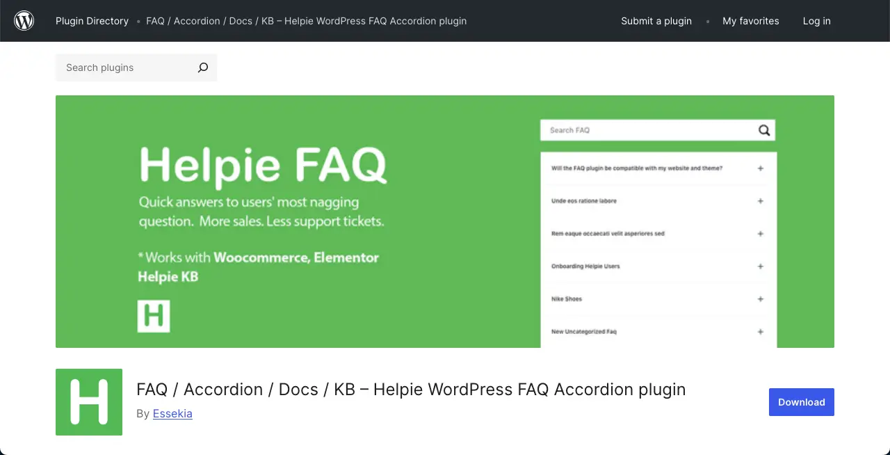 Helpie WP to elastyczna wtyczka do budowania i wyświetlania zawartości FAQ lub formatu akordeonu. Gdy zawartość FAQ będzie gotowa, możesz wyświetlać ją w całej stronie internetowej za pomocą skrótów, bloków Gutenberg, widżetów elementarnych lub widżetów motywów. Możesz zorganizować FAQ w kategorie lub tagi w celu łatwej nawigacji.