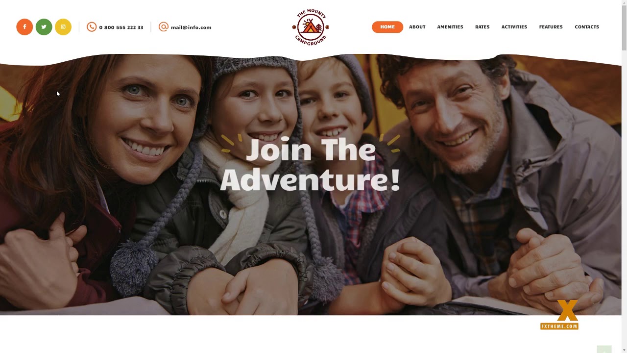 Ten motyw zawiera dwa style strony głównej, z których każdy jest przeznaczony do użytku na stronie kempingowej. Może być również wykorzystana jako strona poświęcona wszelkiego rodzaju aktywności na świeżym powietrzu.