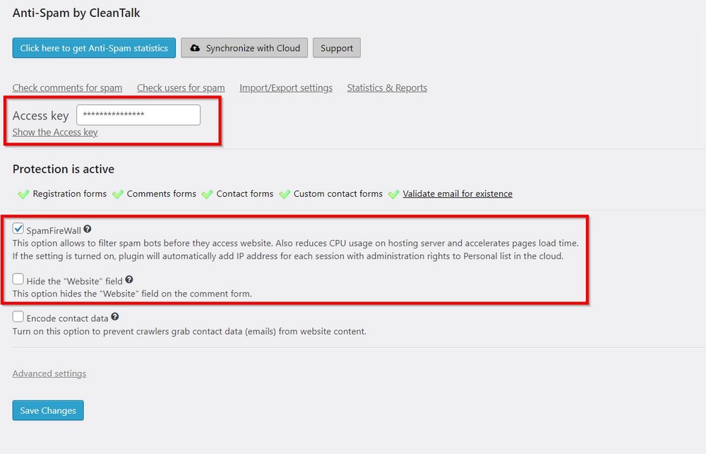 Klucz łączy Twoją witrynę z antyspamową bazą danych w chmurze, umożliwiając wtyczce natychmiastowe wyczuwanie komentarza spamowego.