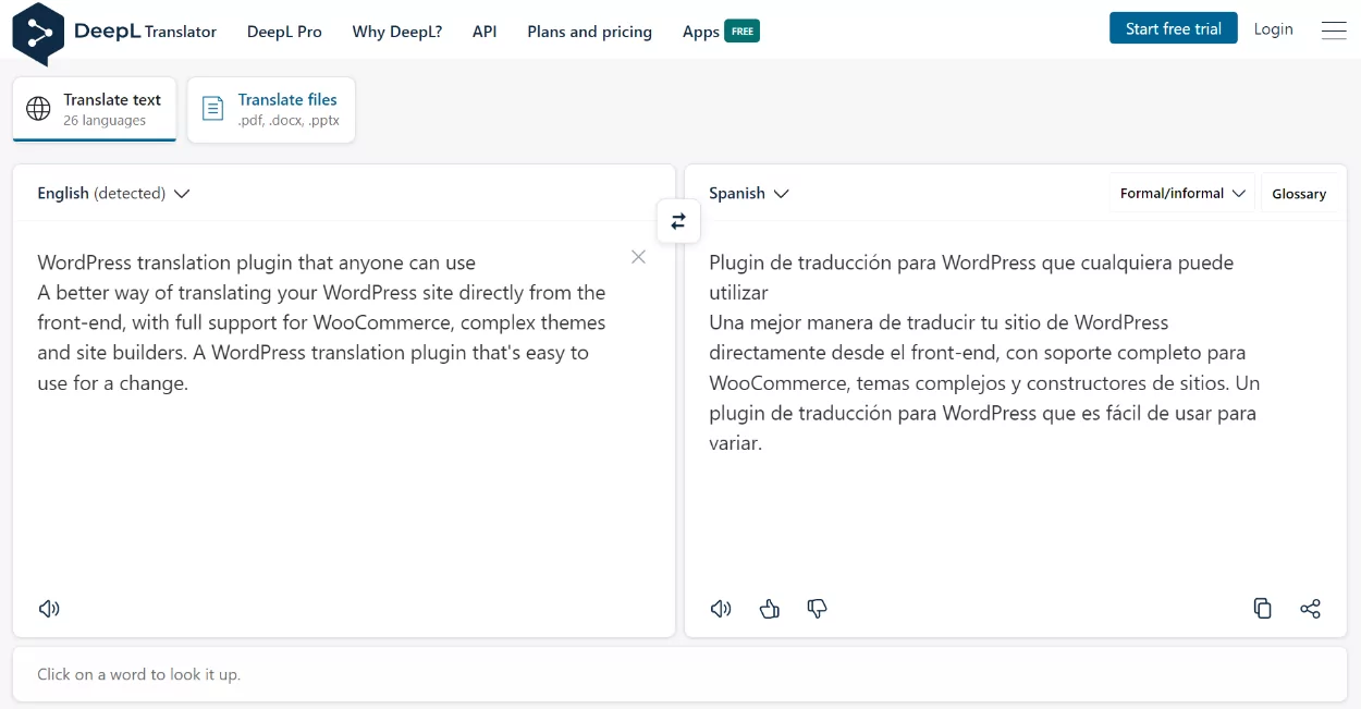 Możesz użyć interfejsu internetowego lub aplikacji komputerowych do osobistego tłumaczenia. Możesz też użyć DeepL API do przetłumaczenia swojej witryny lub aplikacji, w tym za pomocą TranslatePress do pełnego przetłumaczenia witryny WordPress za pomocą DeepL.