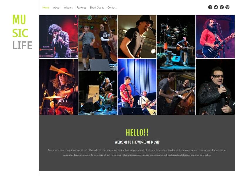 Życie muzyczne to przejrzysty, elegancki i nowocześnie wyglądający szablon HTML, idealny dla każdego typu witryny związanej z przemysłem muzycznym. Daje w pełni responsywny projekt witryny, dzięki czemu wygląda oszałamiająco na wszystkich typach urządzeń. Ten szablon jest zbudowany z czystym systemem płaskiej siatki przy użyciu HTML5 i CSS3, dzięki czemu Twój szablon jest bardziej wyjątkowy. Niektóre niesamowite funkcje szablonu są kompatybilne z różnymi przeglądarkami, w tym PSD, uniwersalny, W3Layouts itp.