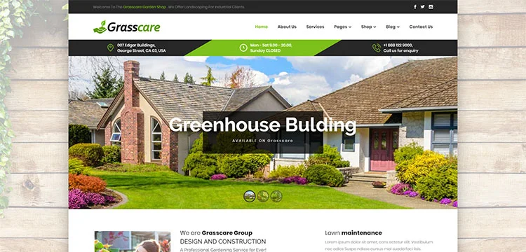 Grasscare to kolekcja responsywnych motywów WordPress dla ogrodnictwa i trawników z predefiniowanymi elementami internetowymi, które pomogą Ci zbudować własną witrynę. Ten szablon WordPress jest dobrze dopasowany do rolnictwa, firmy budowlanej, kwiaciarni, ogrodnika, ogrodnictwa, trawy, strony internetowej ogrodnika i nie tylko. Motyw WordPress Grasscare ma w pełni szybki, responsywny układ. Doskonale dopasowuje się do różnych wyświetlaczy i rozdzielczości, od ekranów komputerów stacjonarnych po tablety, iPady, iPhone'y i małe urządzenia mobilne. Motyw WordPress gotowy na siatkówkę ma świetnie polecane strony. W tym motywie włączona jest instalacja demonstracyjna jednym kliknięciem z obsługą wtyczek Woocommerce. Ma na celu stworzenie atrakcyjnej strony zakupowej.