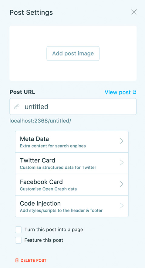 Publikowanie jest bardzo łatwe, a każda potrzebna opcja jest dostępna za jednym kliknięciem. Otwórz ustawienia postu, a uzyskasz dostęp do obrazu posta, metadanych, kart na Twitterze, kart na Facebooku, a nawet skryptów nagłówka/stopki.