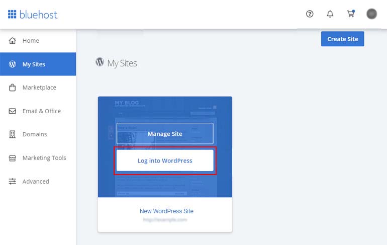 Na szczęście Bluehost i niektórzy inni czołowi dostawcy WordPressa udostępniają bezpośredni link do strony logowania do Twojej witryny.