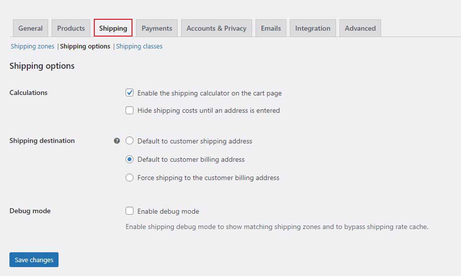 Jest to przydatne tylko wtedy, gdy sprzedajesz fizyczne produkty, które zostaną wysłane do kupujących. Ta zakładka jest podzielona na trzy sekcje: strefy wysyłki, opcje wysyłki i klasy wysyłkowe.