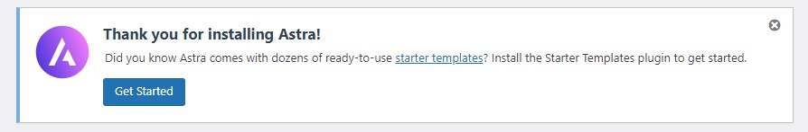 Teraz kliknij przycisk Rozpocznij . To zainstaluje dla Ciebie Astra Starter Sites.