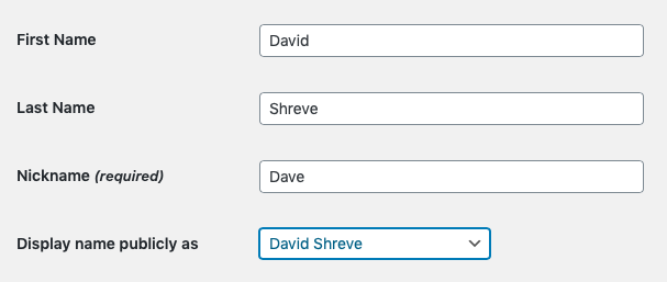 Krótko omówiłem to na powyższej liście, ale rozwińmy to. Istnieje wiele okoliczności, w których chcesz zaktualizować wyświetlaną nazwę autora. Być może chcesz, aby zamiast nazwy użytkownika wyświetlało się ich pełne imię i nazwisko, lub jeśli prawnie zmienili swoje imię i nazwisko, chcą, aby wyświetlało się ono w swoich postach. Autor może również chcieć używać pseudonimu lub nazwiska, aby było napisane dokładnie w taki sam sposób, jak w innych witrynach, w których są publikowane.