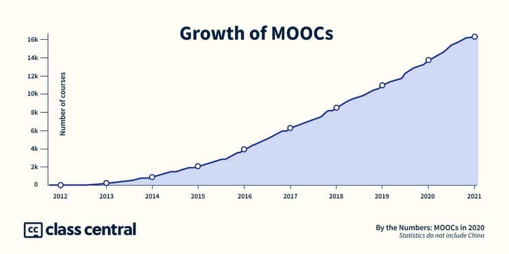Ten wzrost liczby zapisów MOOC oznacza, że kursy online są znane wielu potencjalnym klientom.