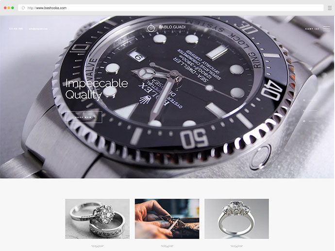 Został stworzony z myślą o ogólnym doświadczeniu użytkownika, jakiego oczekuje osoba przeglądająca sklepy z luksusowymi produktami, takimi jak drogie zegarki, biżuteria, akcesoria itp.