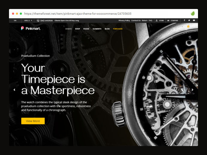 Szukasz inteligentnego sklepu internetowego do sprzedaży zegarków, zegarków znanych światowych marek – ten motyw jest dla Ciebie mądrym wyborem. To prowadzi do nowoczesności, która razem odzwierciedla nowoczesność i poszukiwanie luksusowych sklepów internetowych z zegarkami. Dzięki w pełni funkcjonalnej i nieograniczonej wariacji stylu możesz zbudować całkowicie unikalny projekt dla swojego sklepu.