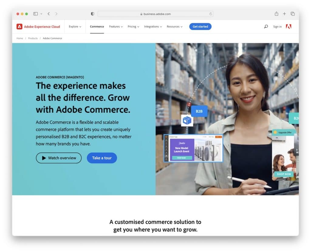 Co więcej, Adobe Commerce płynnie integruje się z wieloma narzędziami i systemami innych firm, co znacznie ułatwia życie. (Potrzebujesz predefiniowanego motywu Adobe Commerce, aby przyspieszyć działanie?)
