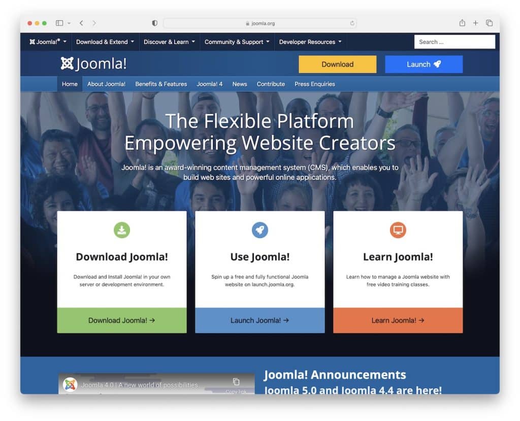 - Stabilny rdzeń i rozszerzalność Joomla dotrzymują kroku zmieniającym się potrzebom biznesowym, skalując się od małych projektów po duże przedsiębiorstwa.