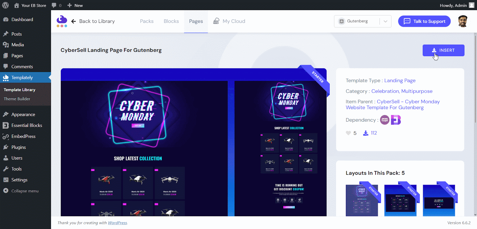 Templately oferuje ponad 5500 gotowych szablonów WordPress , a spośród nich jest sporo opcji na Czarny piątek. Dzięki tym gotowym szablonom na Czarny piątek możesz łatwo skonfigurować swoją witrynę na Czarny piątek. Wykonajmy poniższe kroki, aby nauczyć się tworzyć strony przy użyciu szablonów.