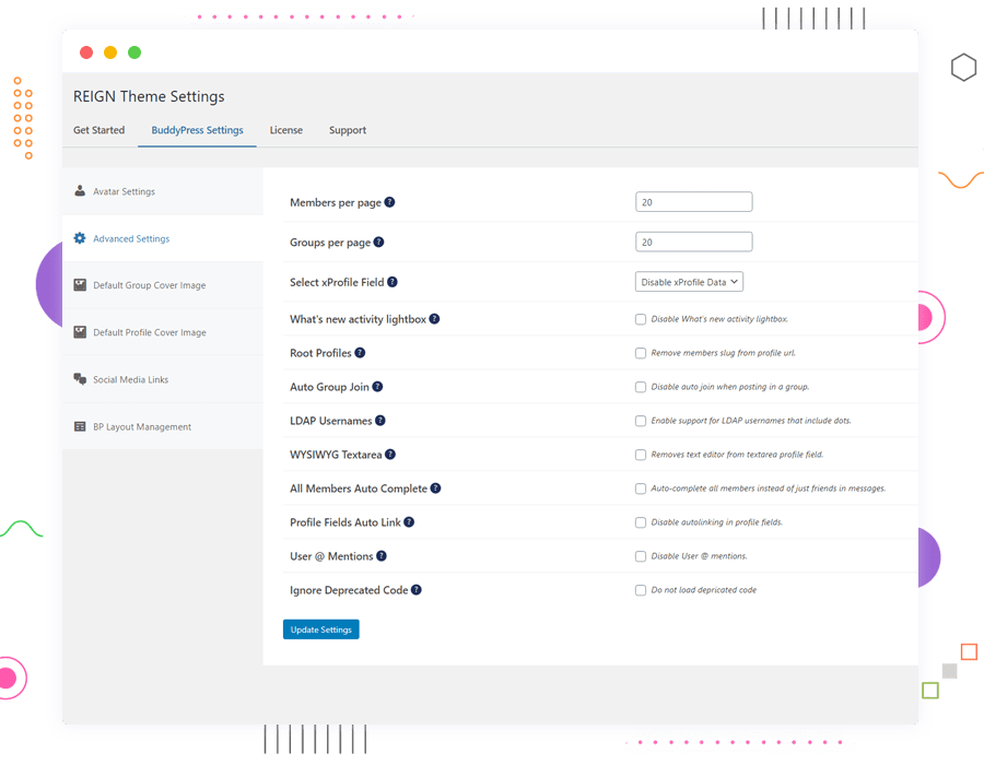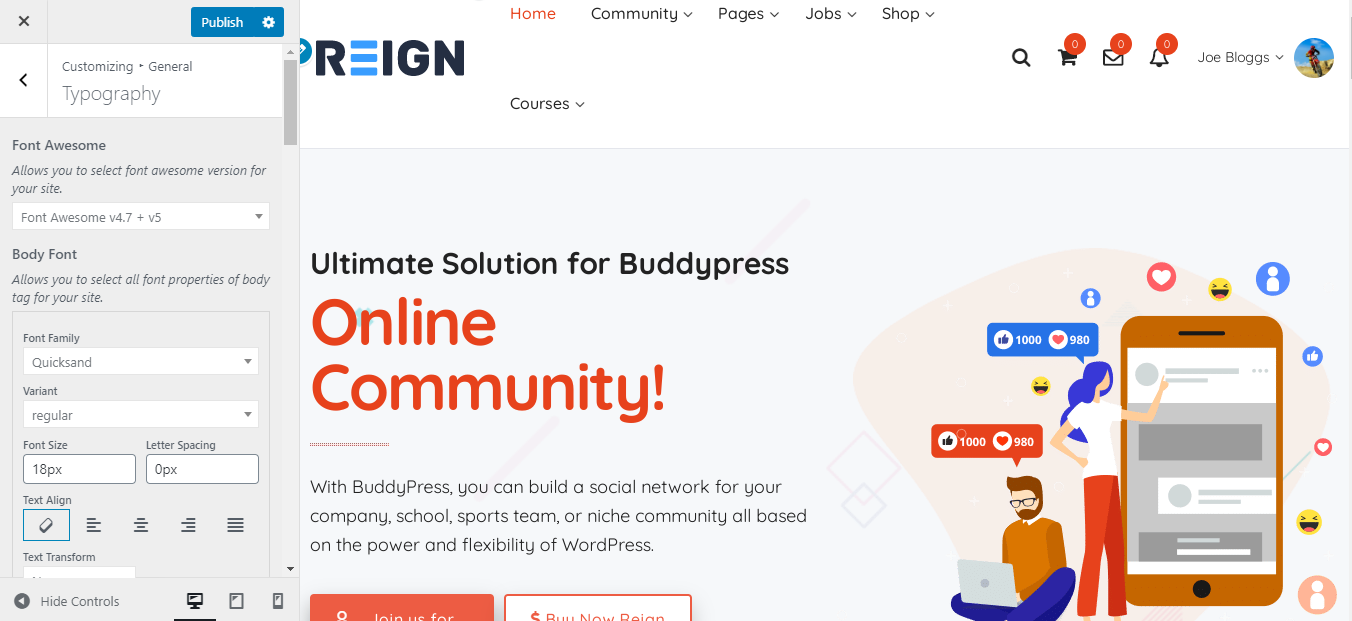 Reign to w szczególności motyw WordPress zorientowany na BuddyPress, który zawiera różne wbudowane opcje sterowania różnymi ustawieniami dostosowywania BuddyPress.