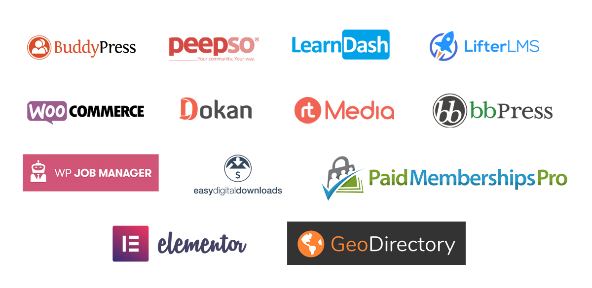 Oprócz wyżej wymienionych funkcji, Reign BuddyPress Theme obsługuje również niektóre popularne wtyczki WordPress, takie jak bbPress LearnDash, LifterLMS, PM Pro, rtMedia, EDD, Dokan Multivendor, BP Docs, PM Pro, WP Job Manager i wiele innych.