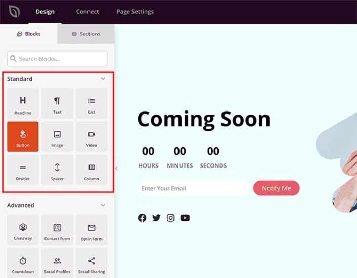 Co najwyżej możesz chcieć zmienić czcionki, paletę kolorów i obraz wiatraka, aby pasowały do Twojej marki. W SeedProd otrzymujesz wizualny edytor typu „przeciągnij i upuść”. Tak więc bardzo łatwo jest zmienić dowolny z tych elementów.