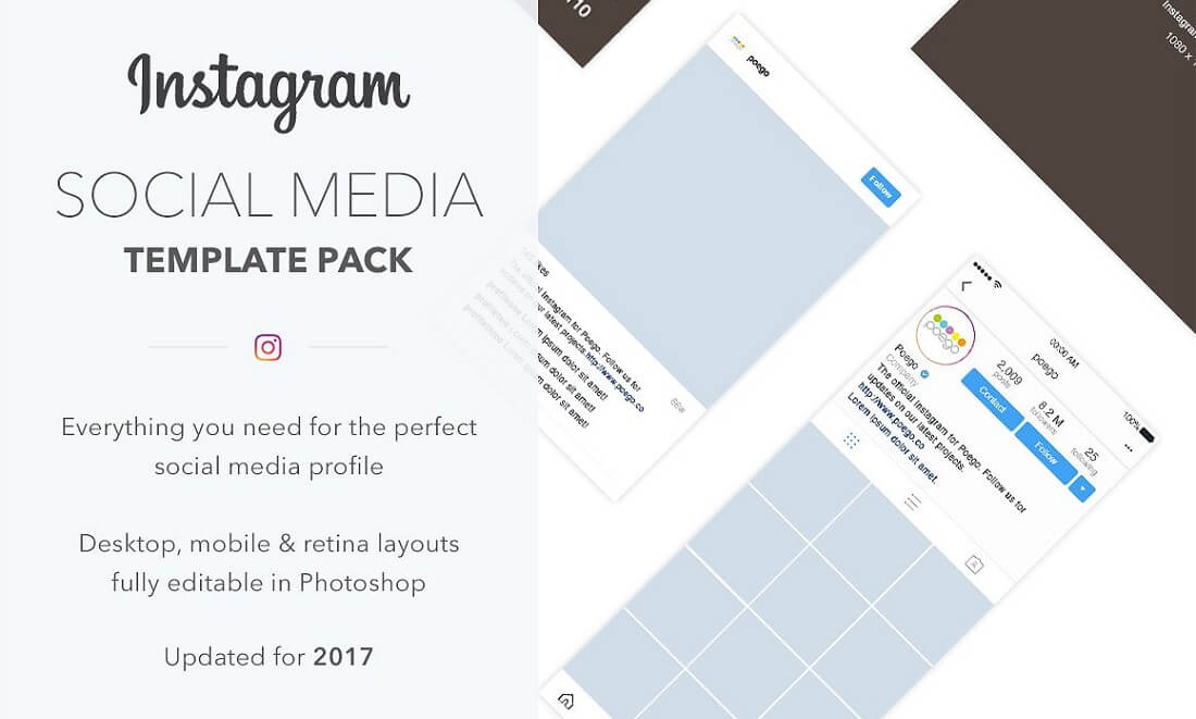 W zależności od branży, w której się znajdujesz, Instagram może być Twoim priorytetem. Wyhodowałeś go do pewnej liczby obserwujących i doszedłeś do punktu, w którym nie możesz już popełniać błędów. Wszystko musi być idealne, zanim trafi do publikacji. Aby uniknąć jakichkolwiek błędów, przydatny jest pakiet szablonów mediów społecznościowych na Instagramie. Pomoże Ci to ulepszyć posty ze zdjęciami, zdjęcia profilowe, kampanie marketingowe i ogólny wygląd Instagrama. Zabłyśnij w najlepszym świetle i miej rzeczy najwyższej jakości z każdym wpisem i innymi aktualizacjami profilu. Pliki PSD są łatwe do edycji i gotowe do wyświetlania na wyświetlaczach Retina (rozdzielczość 200% i 100%). Dodatkowo istnieje plik PDF, który poprowadzi Cię przez proces modyfikacji.