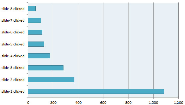 Tutaj interakcja na kolejnych slajdach była większa niż w poprzednich badaniach. Tak więc, jeśli chodzi o dostarczanie dodatkowych informacji w określonym kontekście, wydaje się, że pokazy slajdów są przydatne. Wydają się jednak mniej odpowiednie jako narzędzie do nawigacji w witrynie.