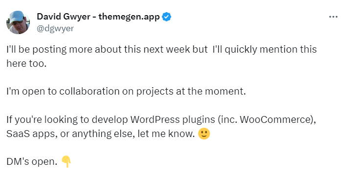 Możesz promować swoje usługi tworzenia wtyczek w kanałach mediów społecznościowych, takich jak ten: