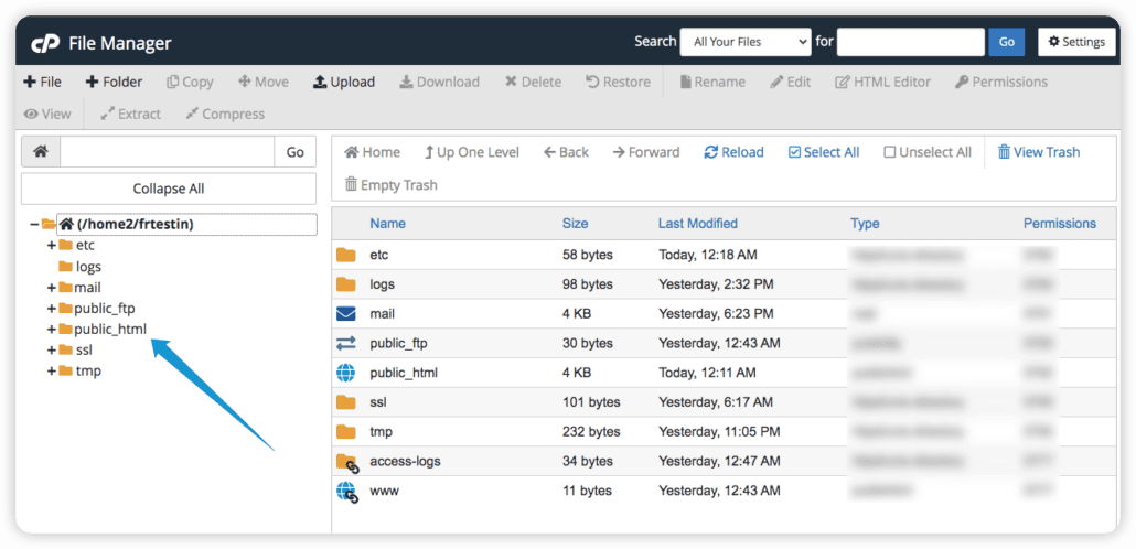 W menedżerze plików kliknijpublic_html , aby wyświetlić pliki WordPress.