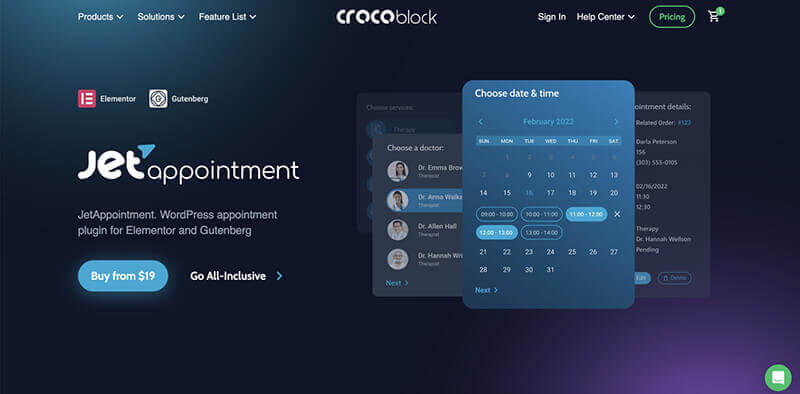 Wtyczka JetAppointment jest niezbędna, jeśli świadczysz usługi godzinowe, a odwiedzający muszą dokonać rezerwacji na konkretny dzień i godzinę. Pomaga stworzyć funkcjonalną stronę rezerwacji spotkań, dodać dostawców i usługi, kalendarz dostępności, ustawić przypomnienia o usługach i płatności itp.