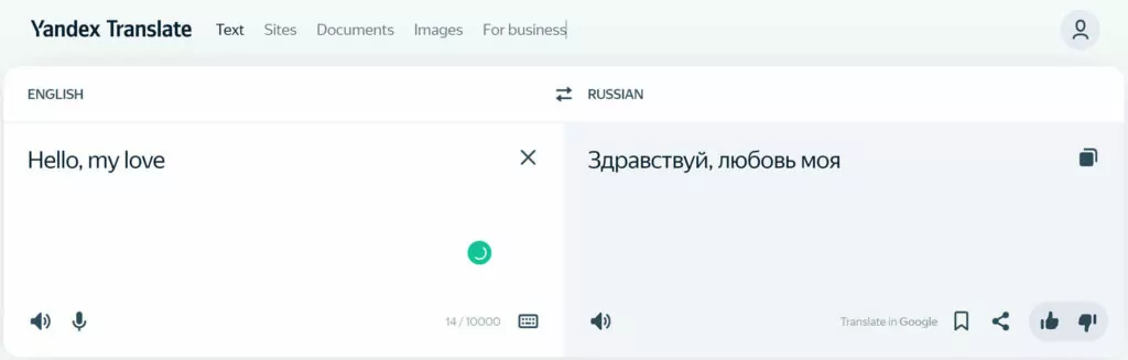 W przypadku większości języków Tłumacz Google jest skuteczniejszy. Yandex jest jednak lepszy do tłumaczeń na języki wschodnioeuropejskie.