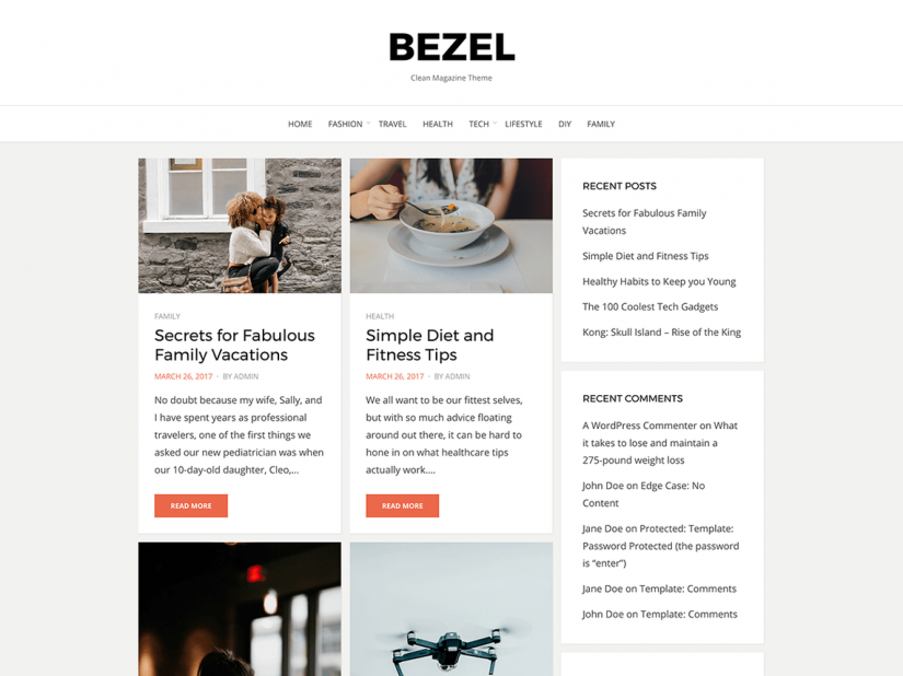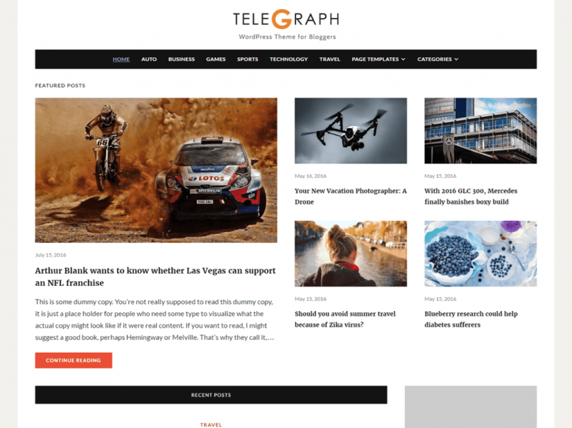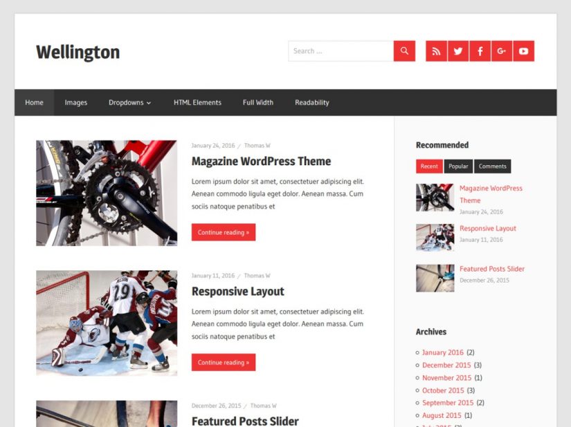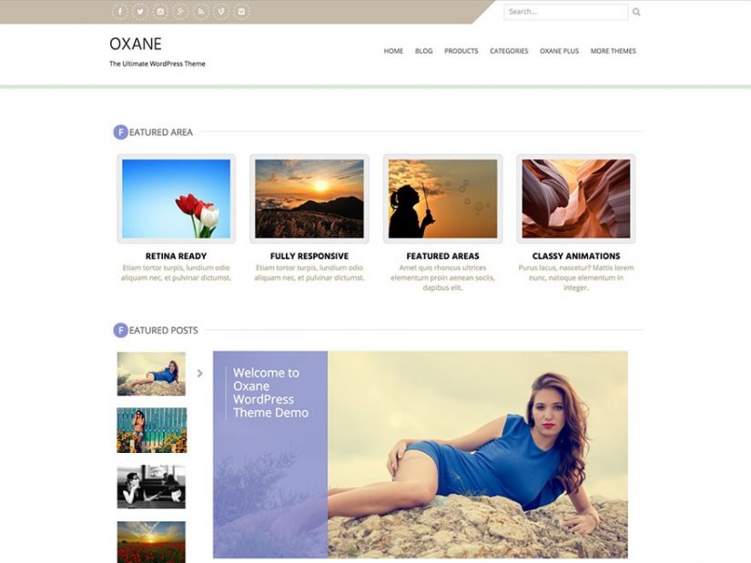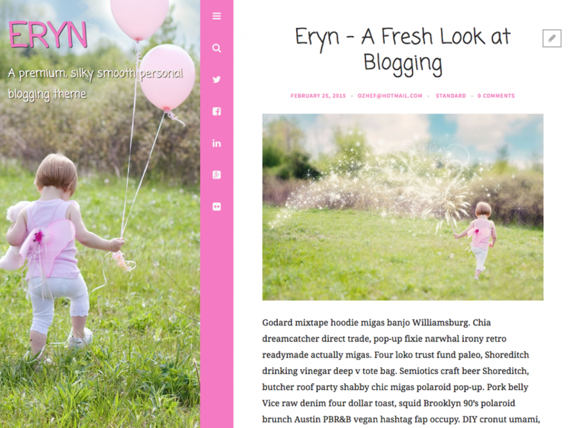 Um tema simples e visualmente atraente para blogueiros. Características: