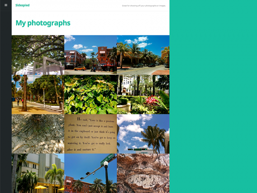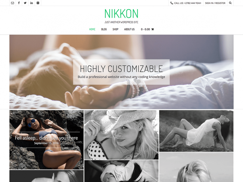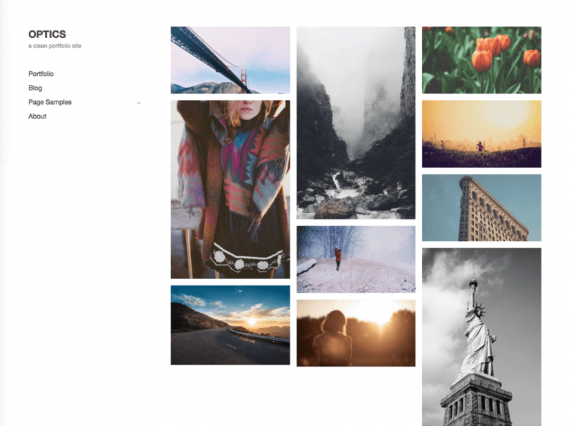 O modelo afirma ser o mais estranho. Focado em dispositivos móveis, e na tela grande metade da página permanece sem uso. O tema é para portfólios de fotos. Características: