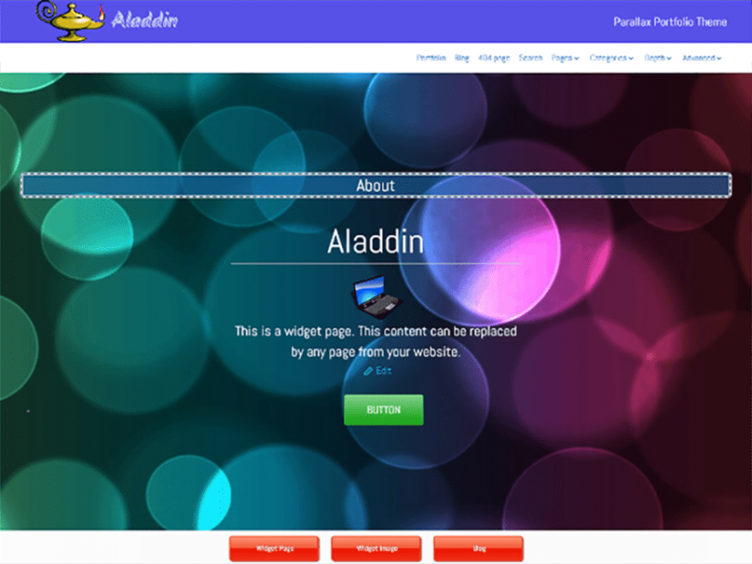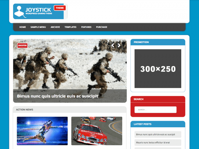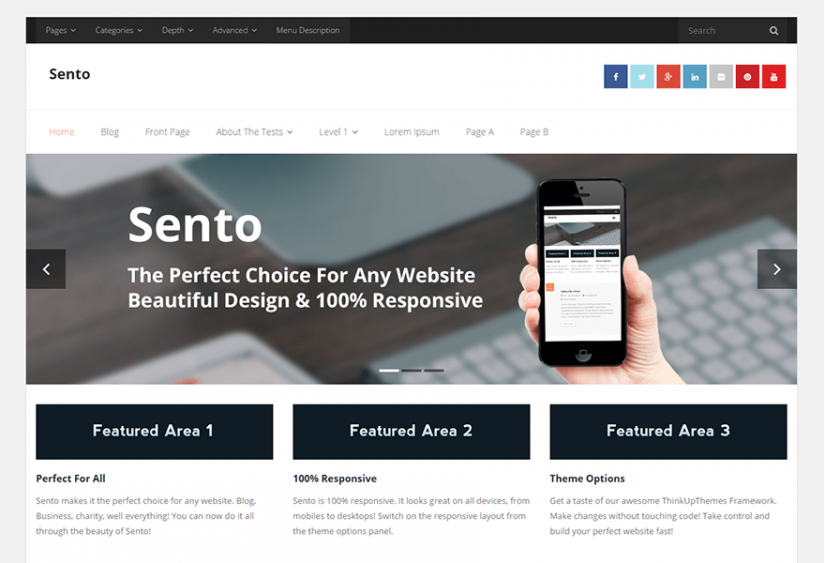 - 12 zonas de widgets, incluindo a capacidade de definir um widget ou anúncio em uma postagem.