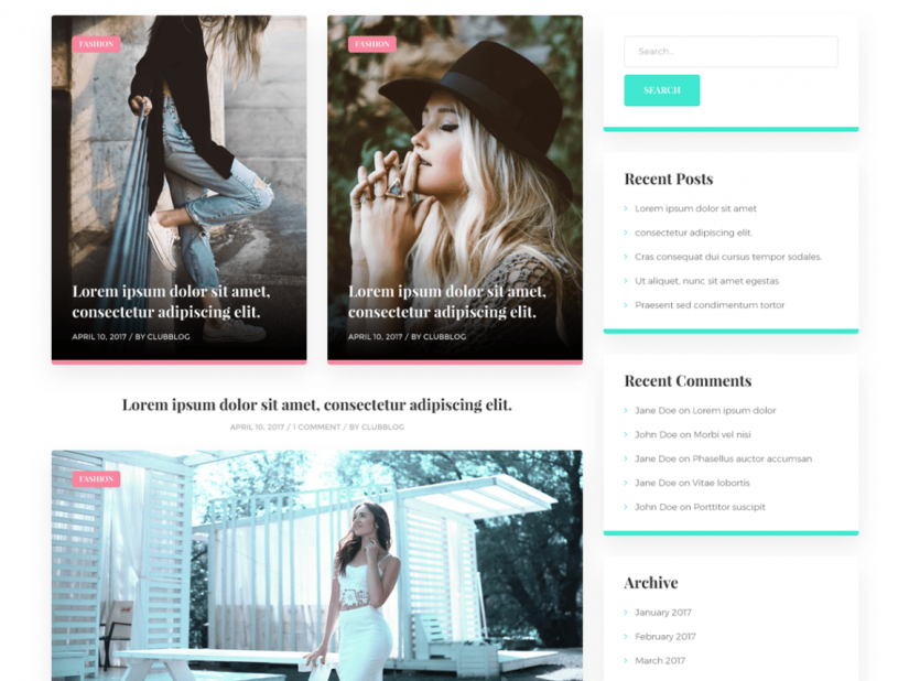 Um tema moderno e visualmente atraente para um blog pessoal ou comercial. Detalhes: