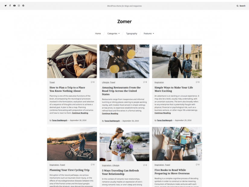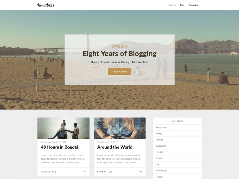 Um tema de blog WordPress gratuito com uma estrutura de página atraente e confortável. Características: