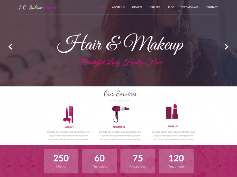- Imagem no cabeçalho, configurações de cores, galeria de trabalhos na página principal.