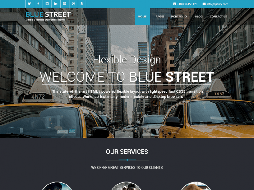 Um tema universal para sites corporativos, portfólios e lojas. Características:
