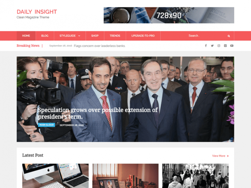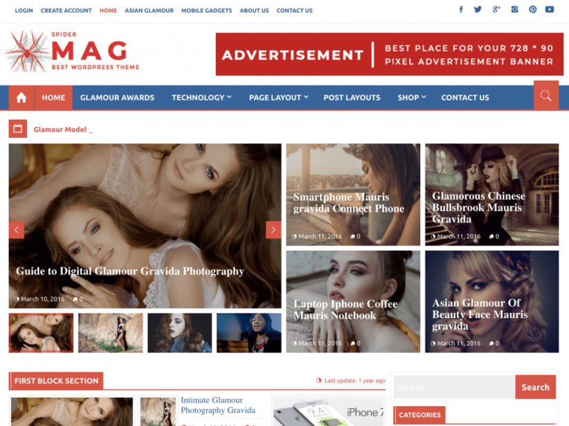 Tema visualmente atraente para blogs com o layout do conteúdo da revista na página principal. Características: