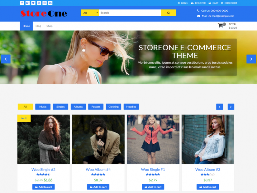 - Duas zonas para widgets, a capacidade de fazer upload de um logotipo no cabeçalho